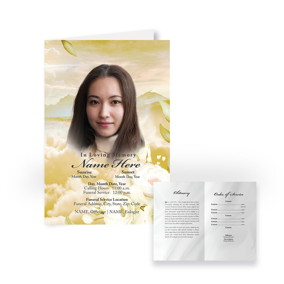 The Bi-Fold Custom Designed Funeral Program is our best-selling size.  The funeral program is personalized for your loved one,
